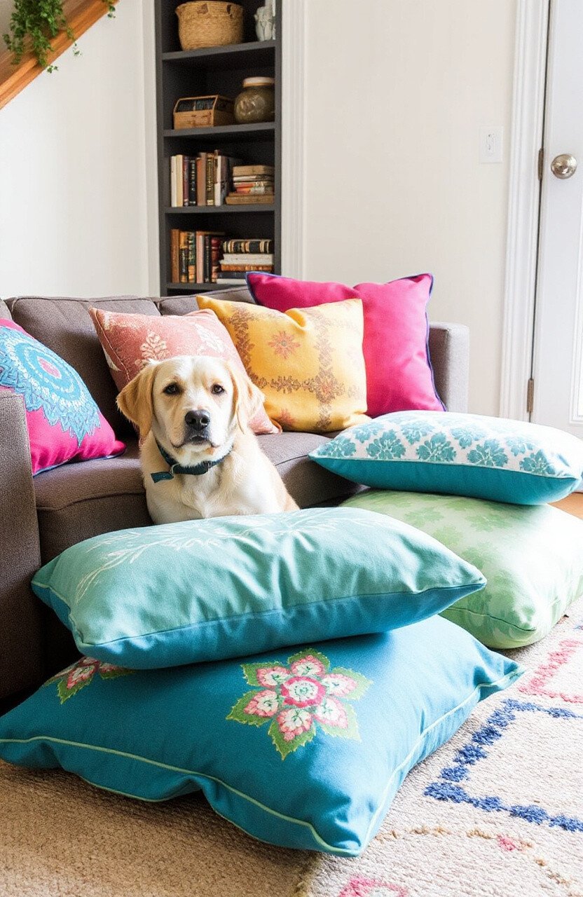 Brighten up your dog’s couch area with colorful floor pillows. They’re perfect for dogs who like to stretch out and get comfy.