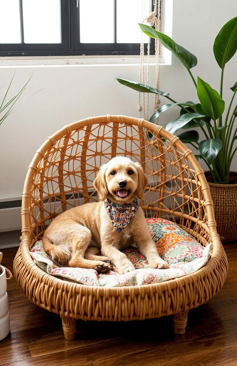 Embrace a boho vibe with a rattan dog bed. It’s a stylish choice that adds texture and warmth to your decor. Pair it with a colorful cushion for a relaxed, eclectic look.