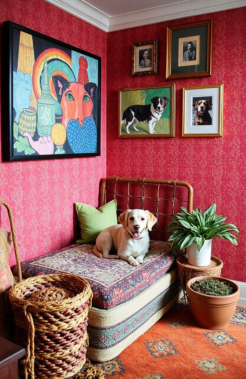 Create an artistic corner for your dog with colorful patterns and textures. Use vibrant fabrics, throw pillows, and a comfy bed to make it pop. It’s a lively space that reflects your personality!