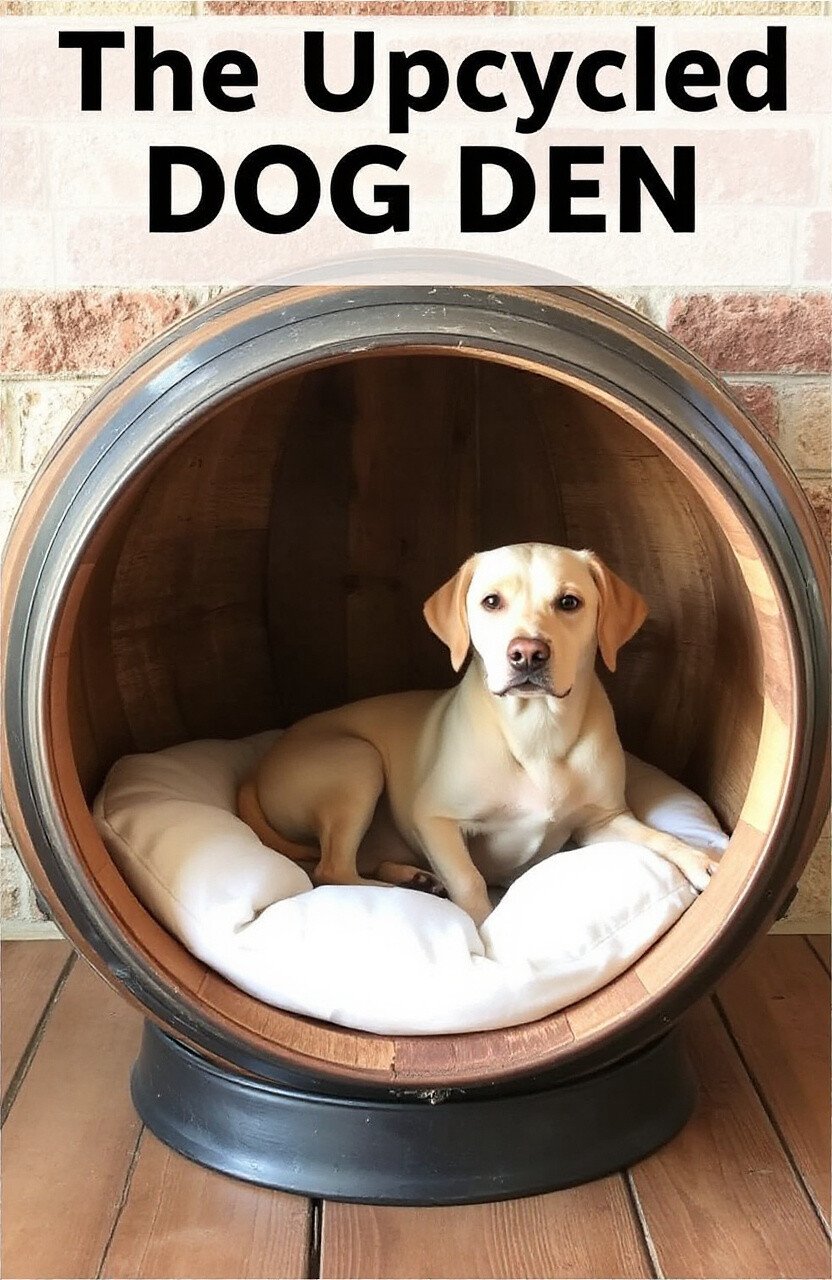 Transform an old barrel into a rustic dog den. It’s an eco-friendly option that adds character to your home. Line it with a soft cushion for a cozy retreat.