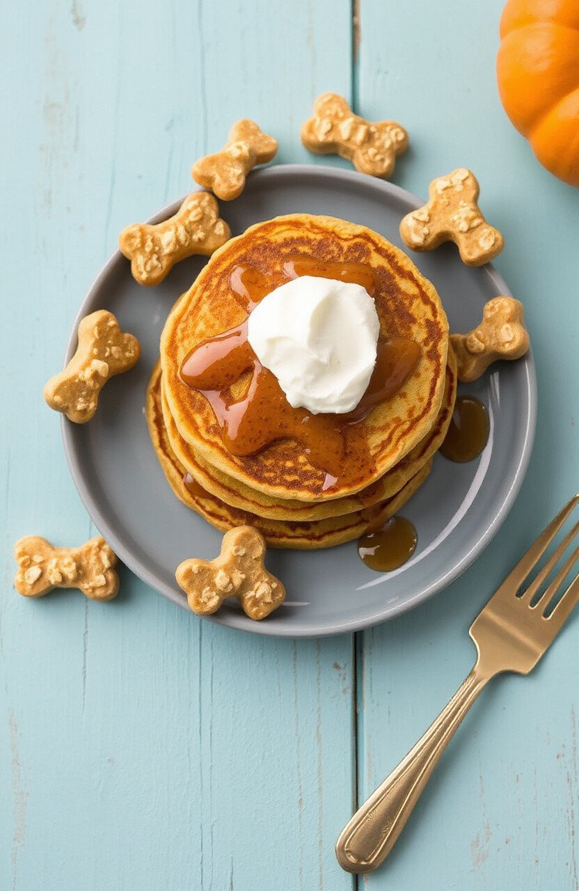 Start your pup’s day with a stack of delightful pancakes made from oat flour and pumpkin puree. These pancakes are not only delicious but are great for digestion too. Top them with a dollop of unsweetened yogurt for a creamy finish.