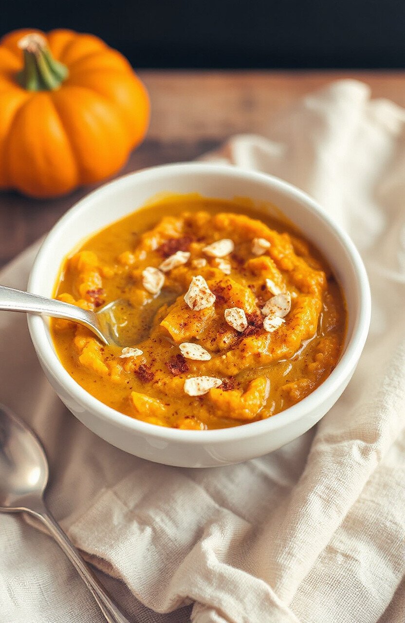 Pumpkin and oatmeal create a cozy, comforting meal ideal for chilly days. This porridge is soothing on the stomach and high in fiber. It’s a warm hug in a bowl.