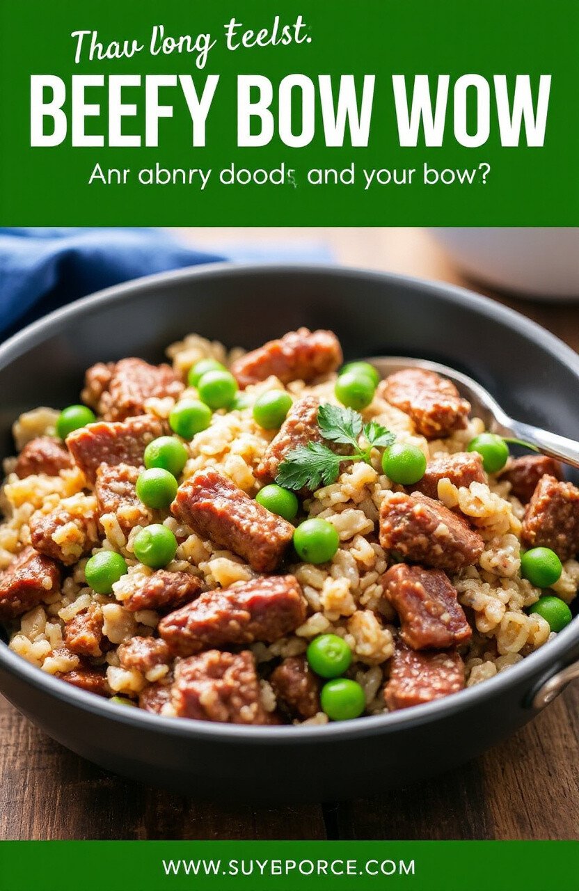 This dish is a beef lover’s dream come true, featuring lean ground beef mixed with brown rice and peas. It’s a hearty meal that’s high in protein, perfect for active dogs. The vibrant green of the peas adds a pop of color that’s pleasing to the eye.