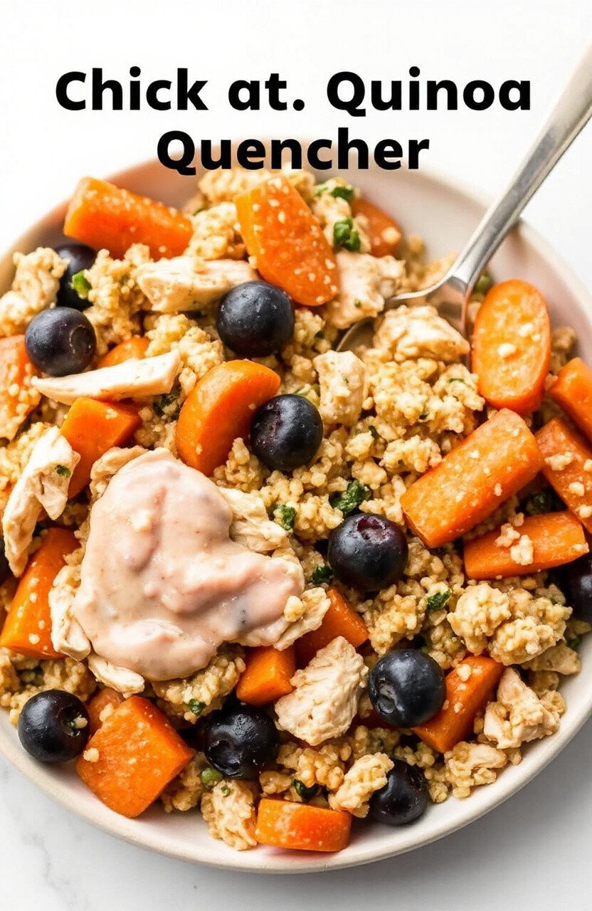 Quinoa is a superfood that’s not just for humans. Mix it with shredded chicken and a handful of carrots for a balanced meal. This dish is excellent for maintaining muscle and boosting energy levels.