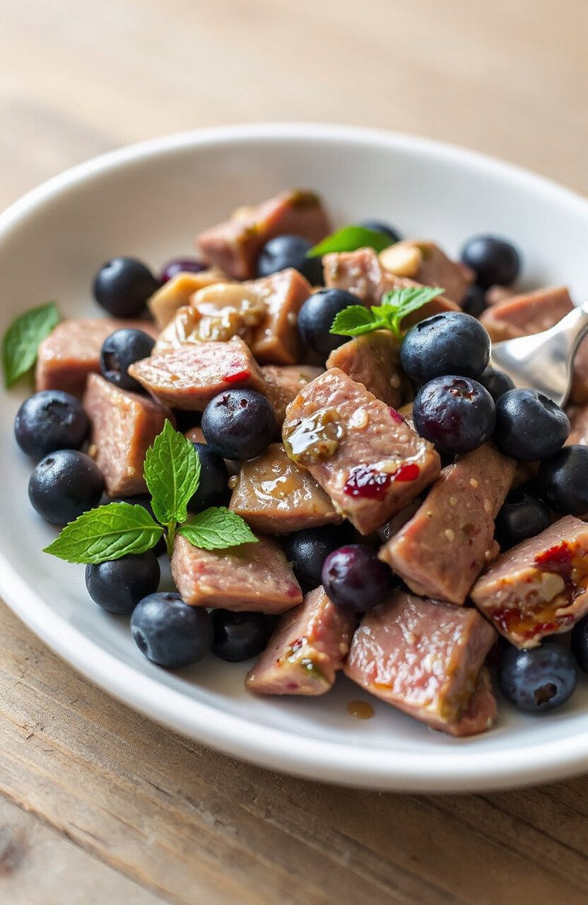 Ducks aren’t just for the pond anymore! Duck meat mixed with blueberries is a gourmet option that’s antioxidant-rich. The blueberries add a burst of flavor and color.