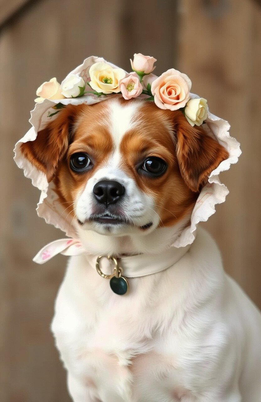 For a touch of springtime charm, a floral bonnet is a beautiful choice. With its delicate design and floral accents, it’s perfect for garden parties or Easter celebrations. It adds a sweet, vintage vibe to your pup’s look.