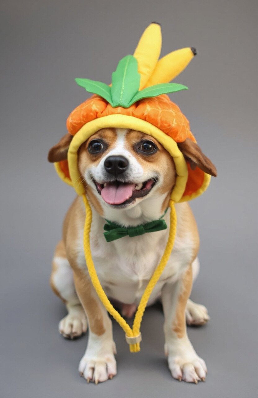Turn your dog into a walking fruit salad with a fun fruit hat. These hats come in various fruit designs, like bananas, pineapples, or watermelons. They’re perfect for summer parties or playful photoshoots.