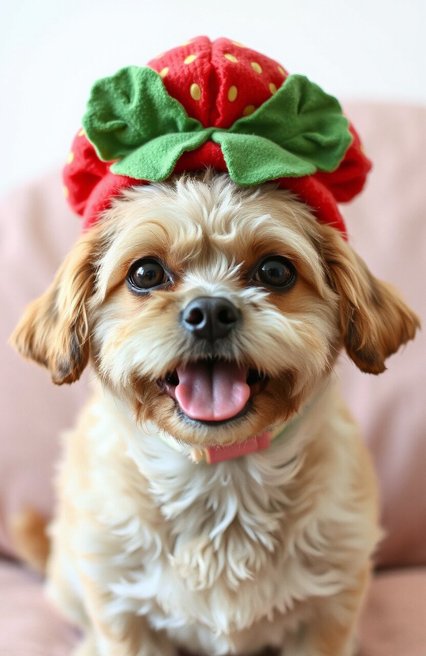 Made from soft materials, these hats are gentle on your dog’s skin. They’re easy to put on and take off, making them great for photo ops. Affordable and eye-catching, a strawberry hat is a delightful addition to any dog’s wardrobe.