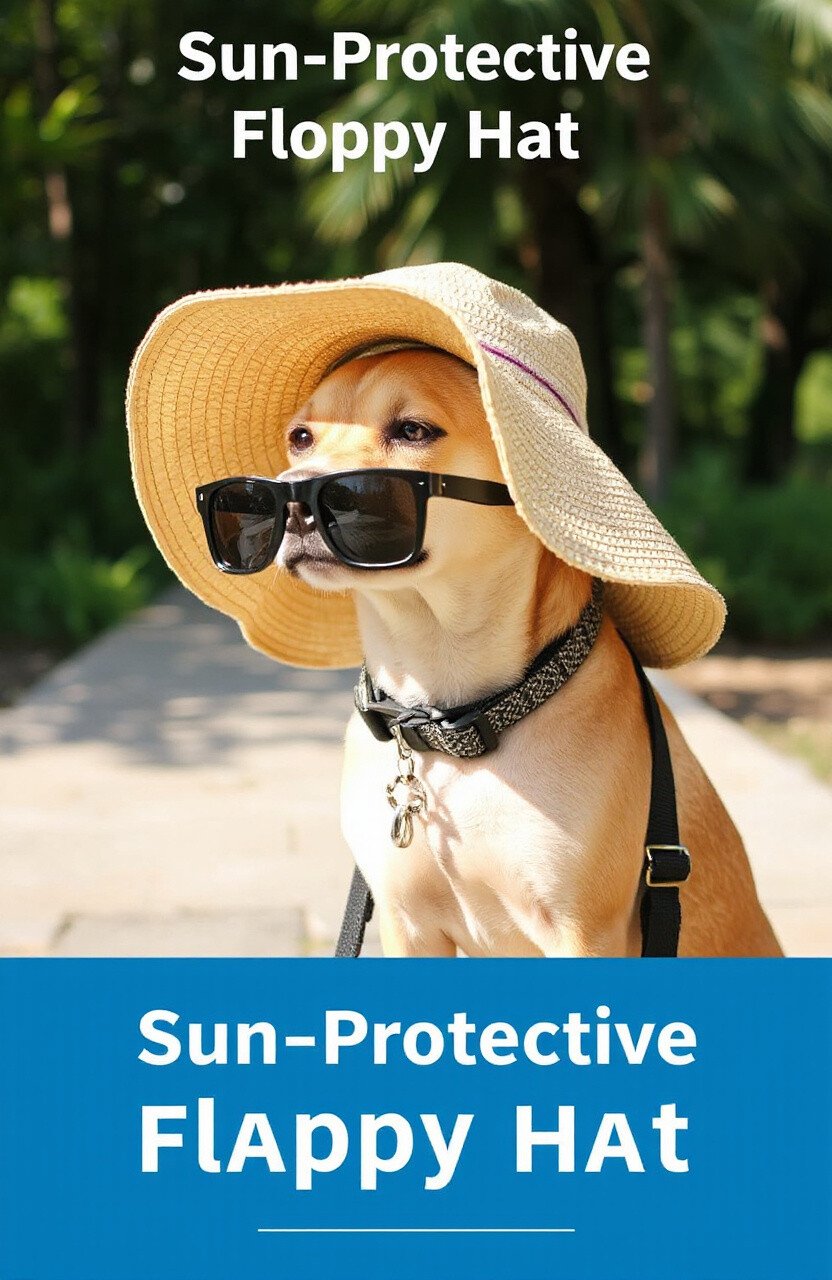 Protect your pup from the sun’s rays with a stylish floppy hat. This wide-brimmed hat offers shade and comfort during sunny walks. It’s like sunglasses for your dog’s head!