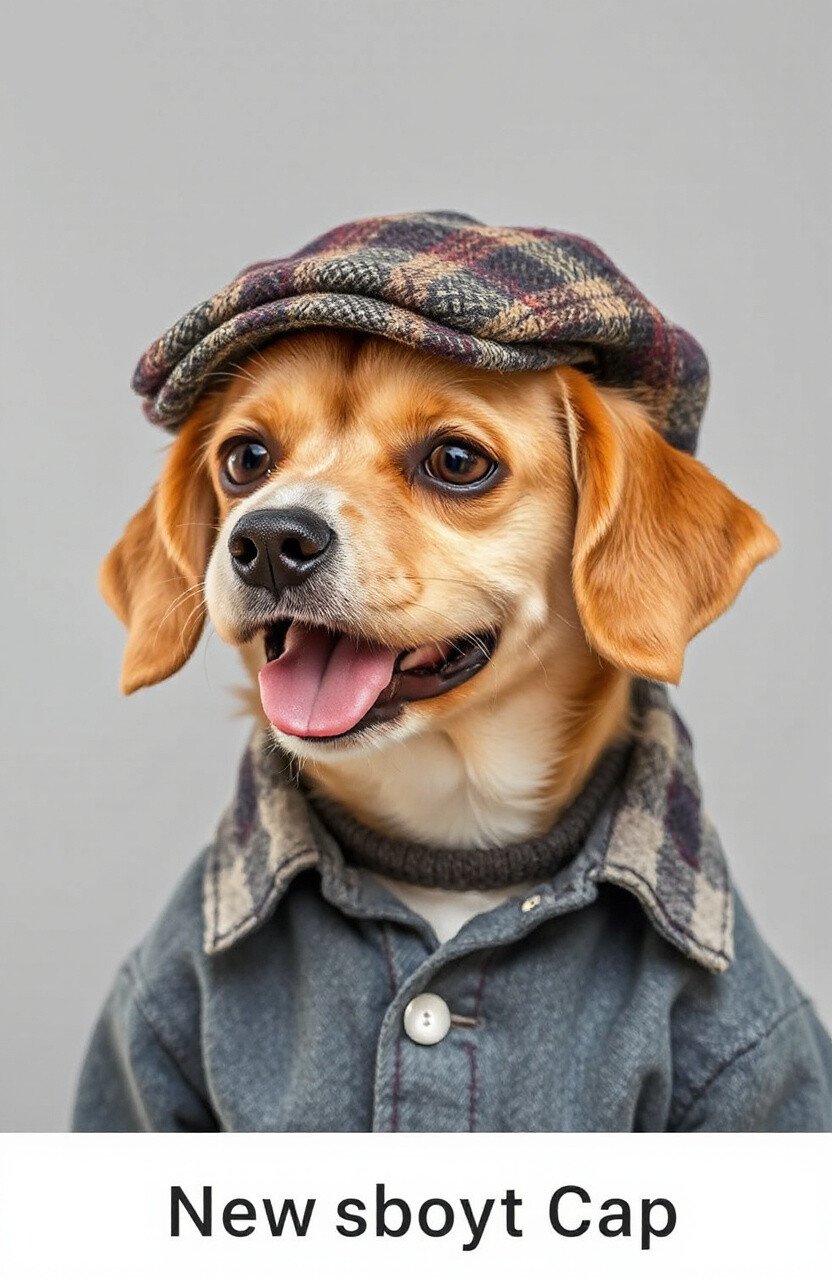 For a vintage vibe, try a stylish newsboy cap on your pup. This classic hat adds a touch of old-time charm to any outfit. Perfect for fall walks or cozy fireside naps.