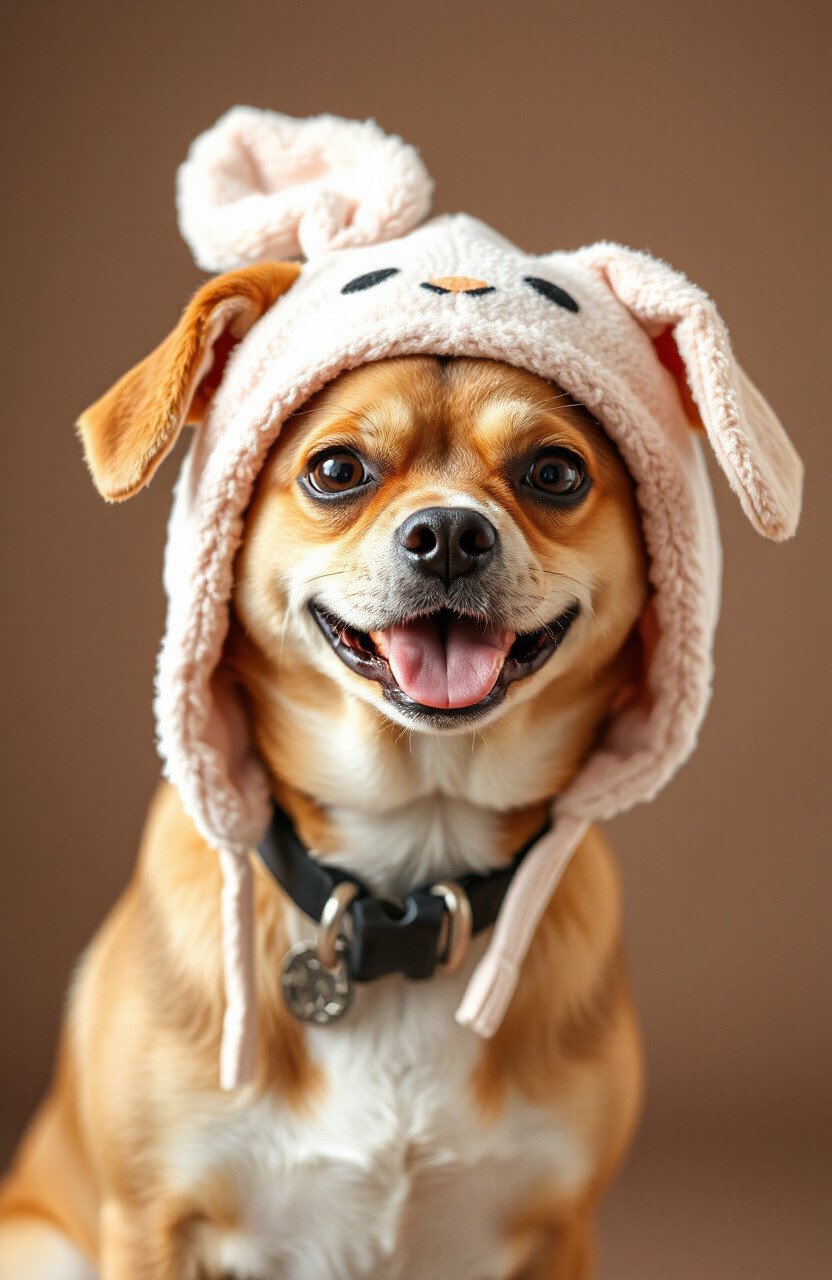 Bring out your dog’s playful side with a hat featuring silly animal ears. Think bunny, bear, or even dinosaur spikes! This whimsical accessory is perfect for photo sessions or just for fun at home.