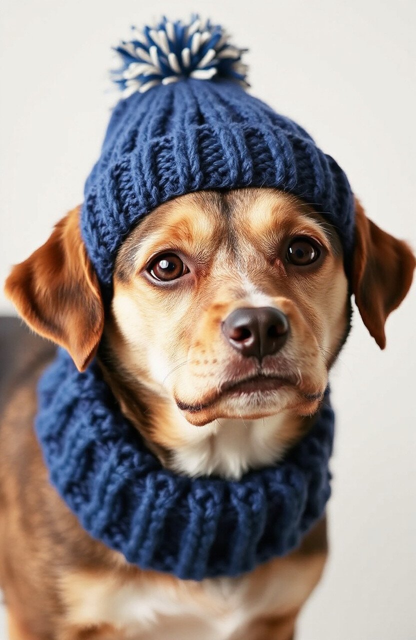 Nothing says winter warmth like a cozy beanie topped with a fluffy pom-pom. This hat is perfect for chilly walks and snowy adventures. Made from soft yarn, it keeps your dog’s ears snug and warm.