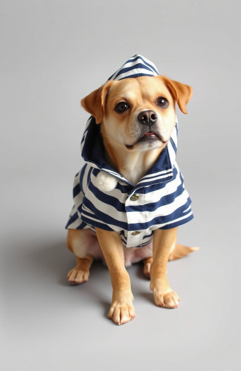 Embrace the sailor in your pup with a nautical striped parka. The classic blue and white stripes are timeless.