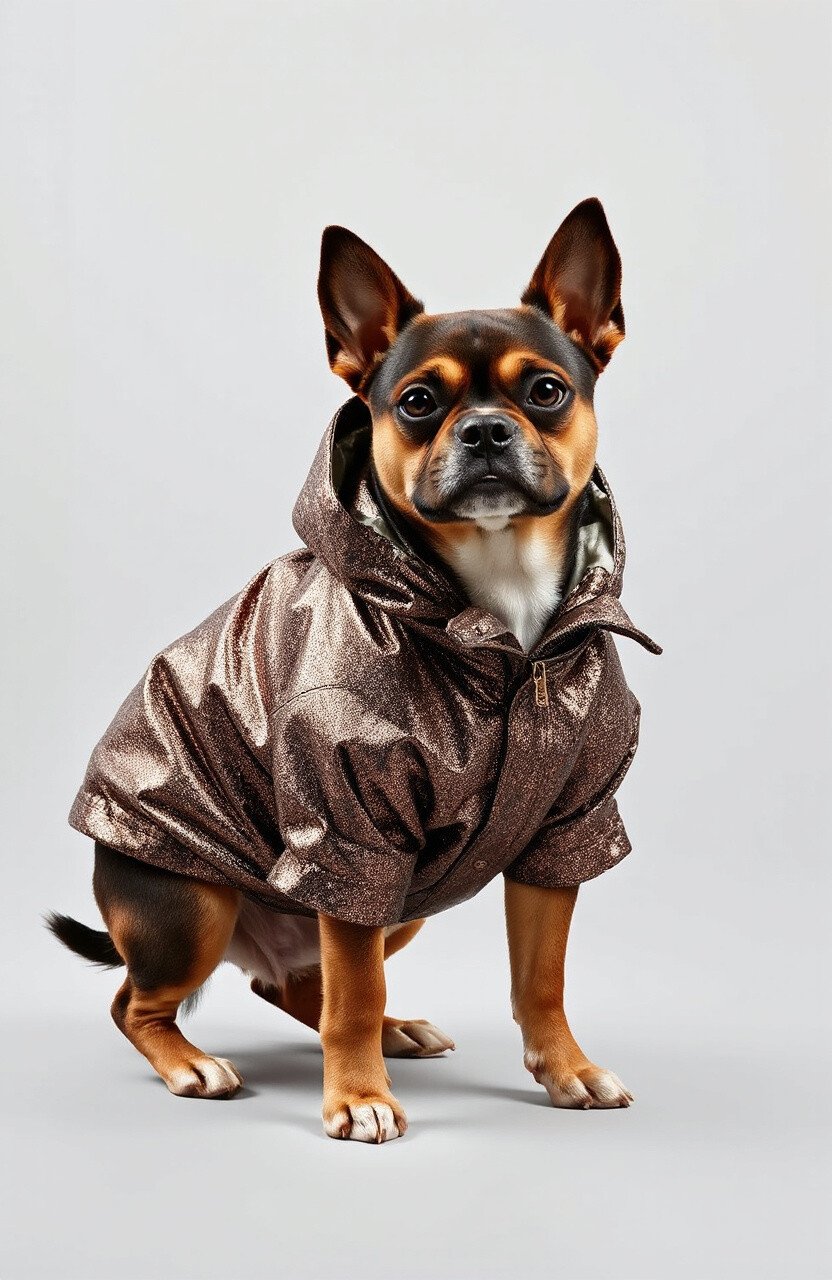 Make your pup the star of the show with this eye-catching metallic parka. It’s shiny, fun, and exudes confidence.