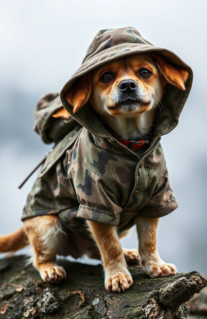 For the adventurous pup who loves the outdoors, a camouflage parka is just the thing. It blends in while standing out.