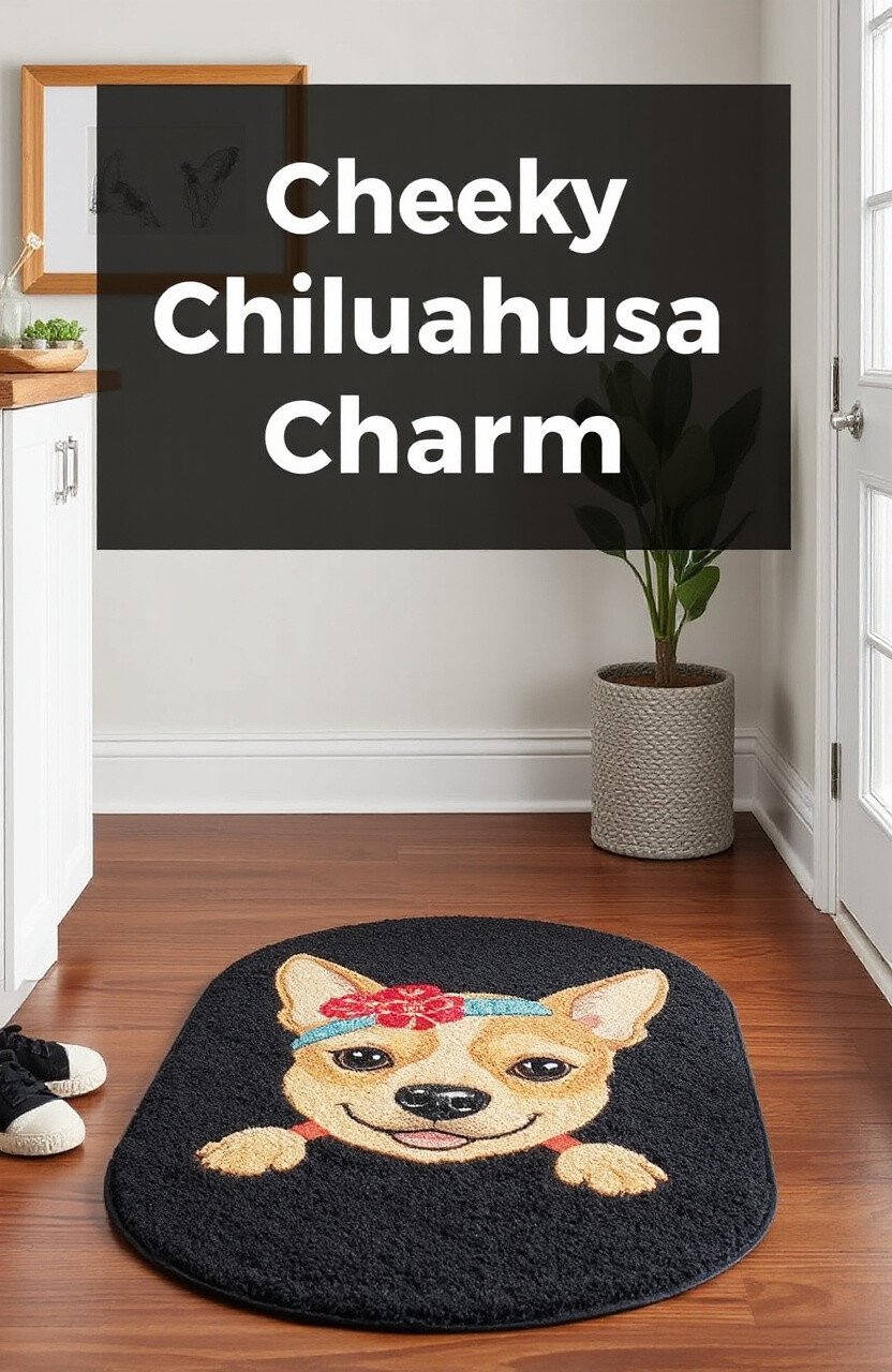 Inject some fun into your home with a rug that captures the playful spirit of a Chihuahua. This rug is small but full of character, featuring bold colors and a cute Chihuahua face.