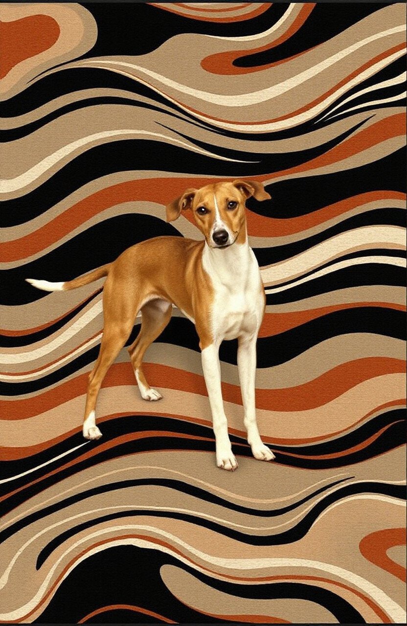The sleek and graceful Whippet is the muse for this unique rug. With flowing lines and a wave-like pattern, it brings a sense of movement and energy to your home.