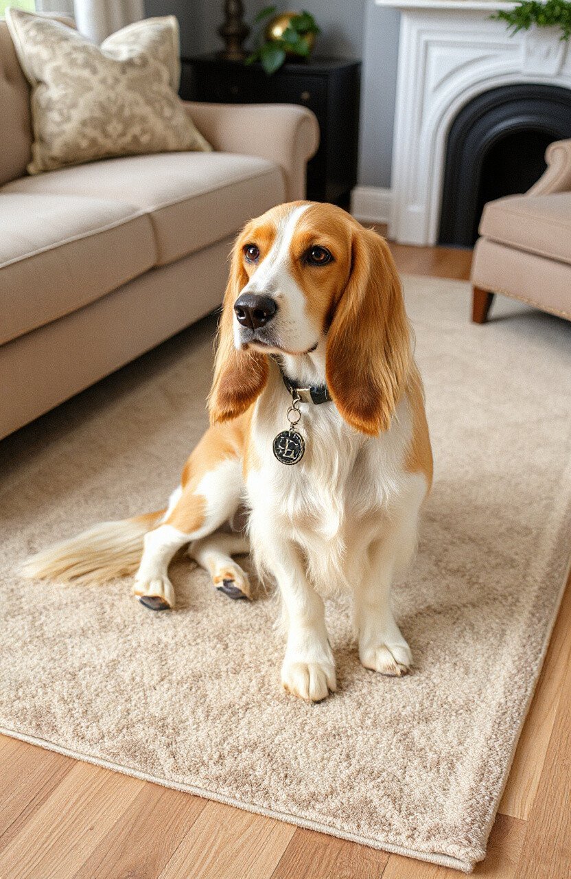 The Afghan Hound is known for its elegance, and this rug mirrors that with a sophisticated design. Featuring long, flowing lines and neutral hues, it adds grace to any space.