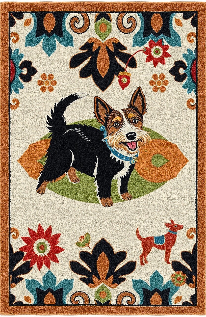 Terriers are known for their tenacity and charm, and this rug captures that spirit with a twist. Featuring bold patterns and vibrant colors, it’s sure to catch the eye.