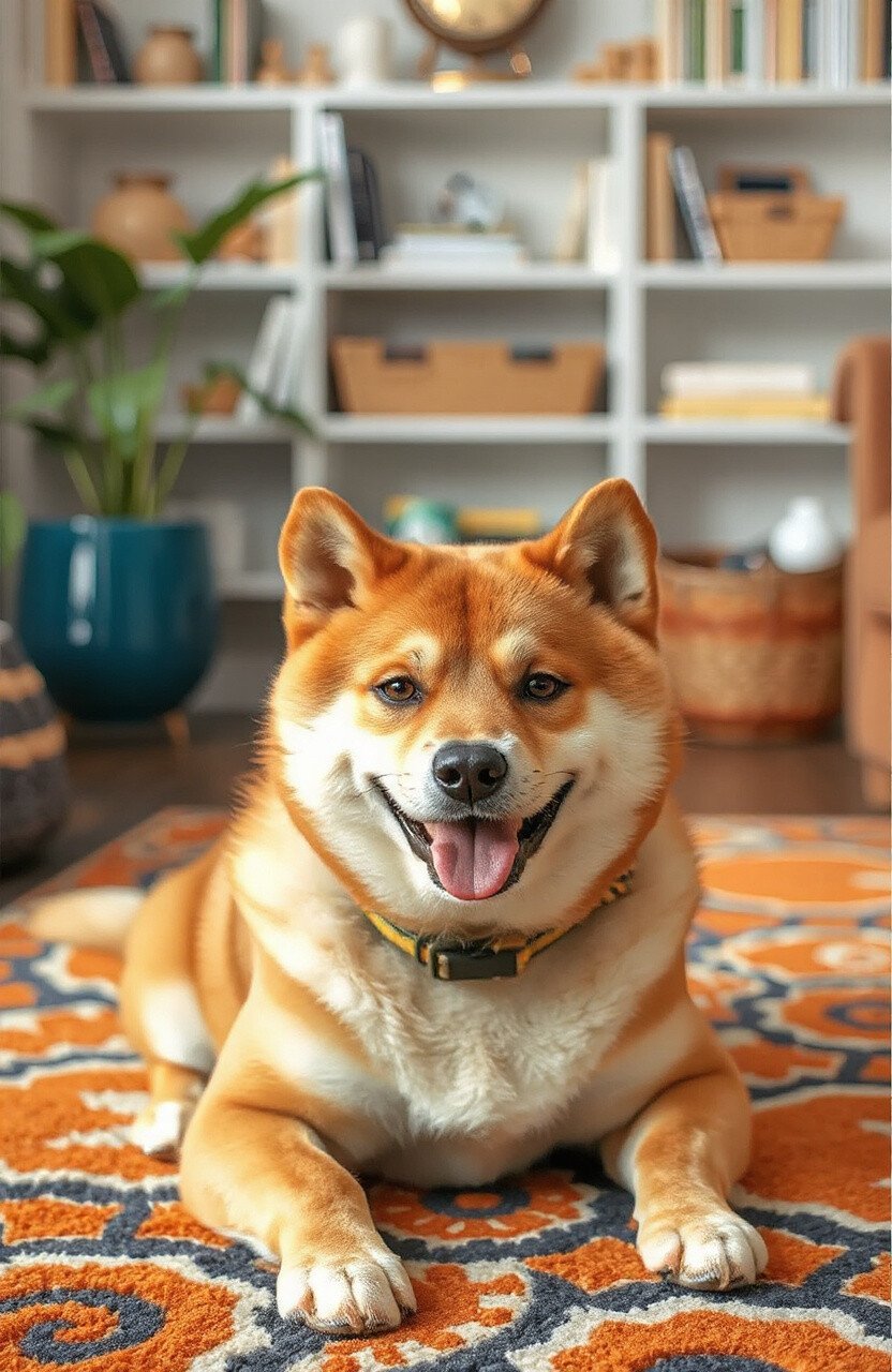 Capture the spirited nature of the Shiba Inu with a rug that’s vibrant and full of energy. The bold oranges and dynamic patterns make it a standout piece.