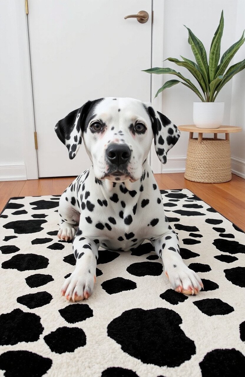 Bring a bit of elegance into your home with a rug inspired by the classic Dalmatian. The black and white spots are bold and striking, adding a modern flair to any room. It’s ideal for those who love monochrome designs but want a playful twist.
