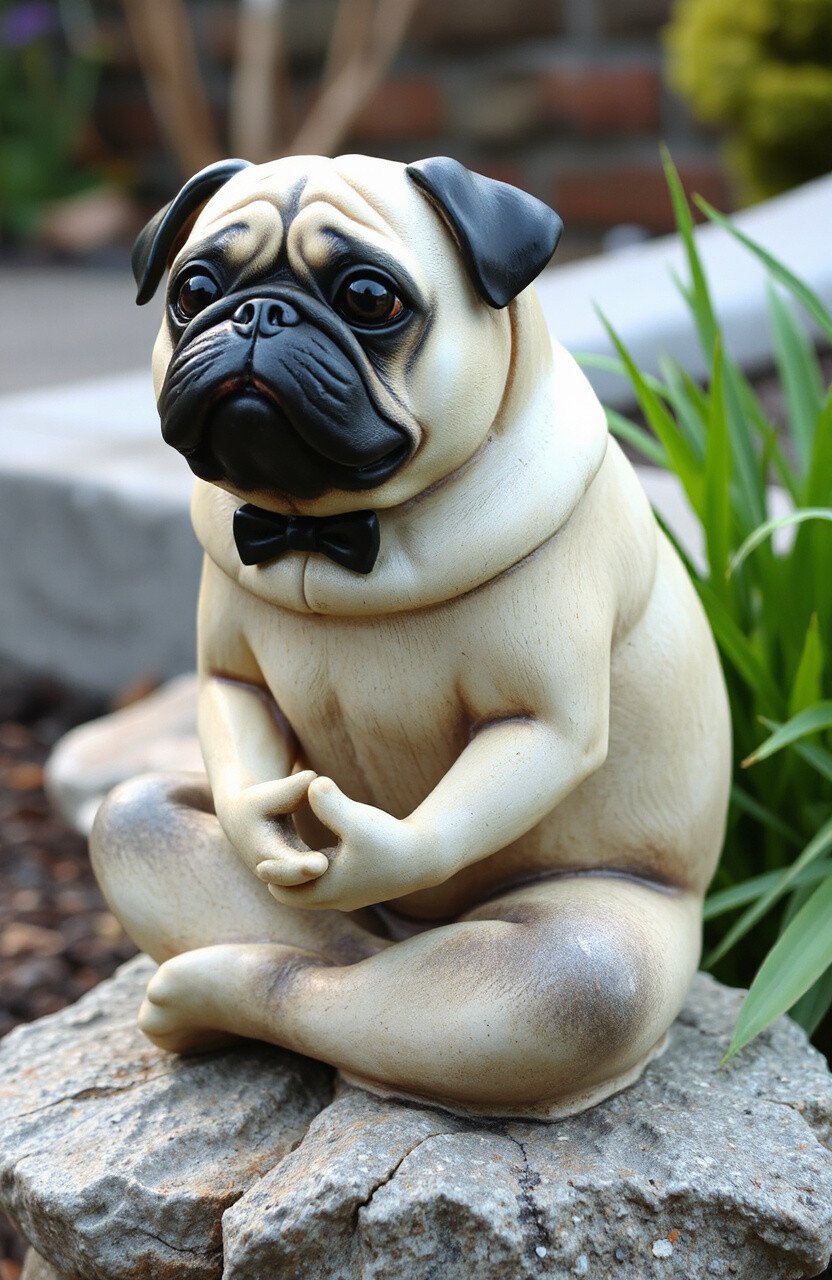 Embrace tranquility with a pug in a meditative pose. The Zen Pug adds a whimsical touch to any peaceful garden setting.