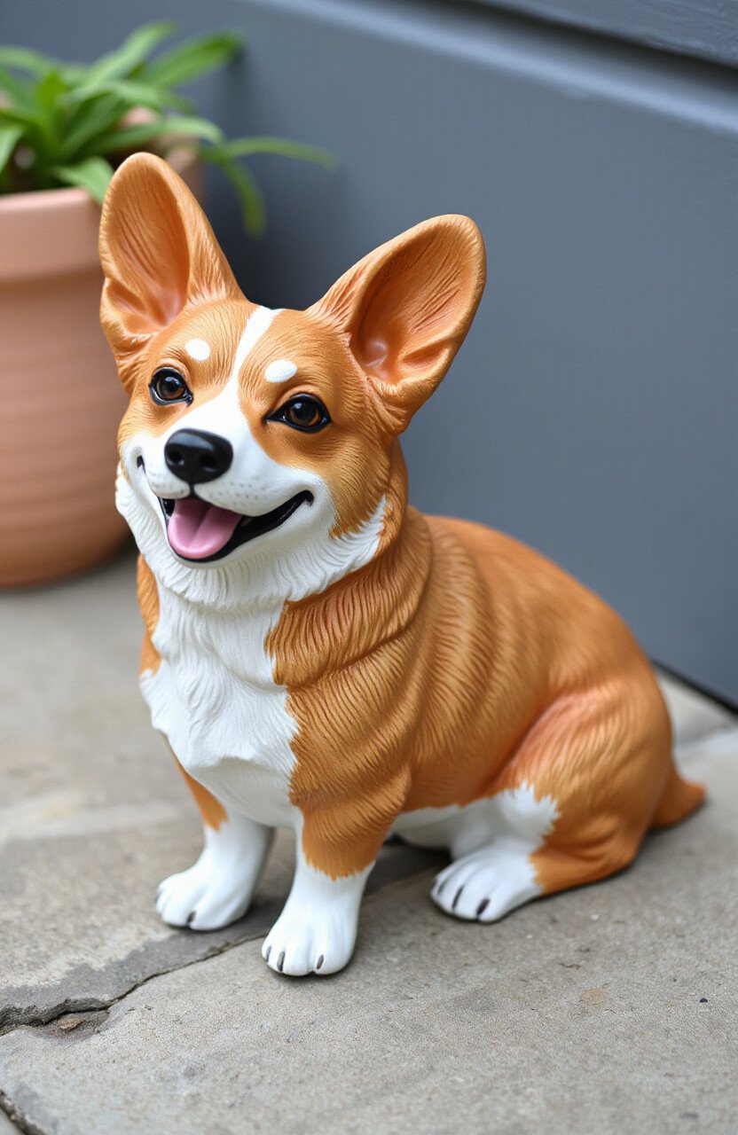 The Cheerful Corgi statue is small but full of personality. Its friendly face and stubby legs make it a delightful addition.