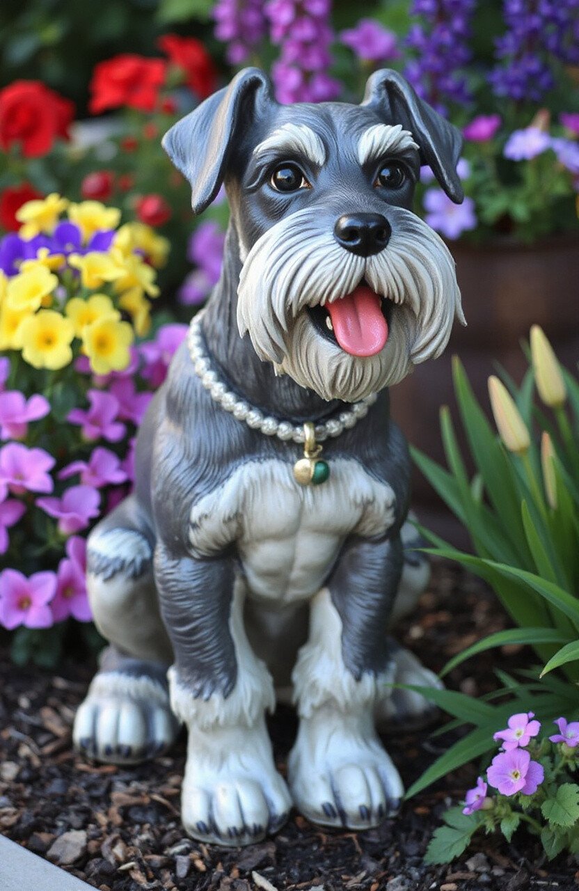 This Schnauzer statue has an artistic twist with exaggerated features. It’s a fun and creative addition to any garden.