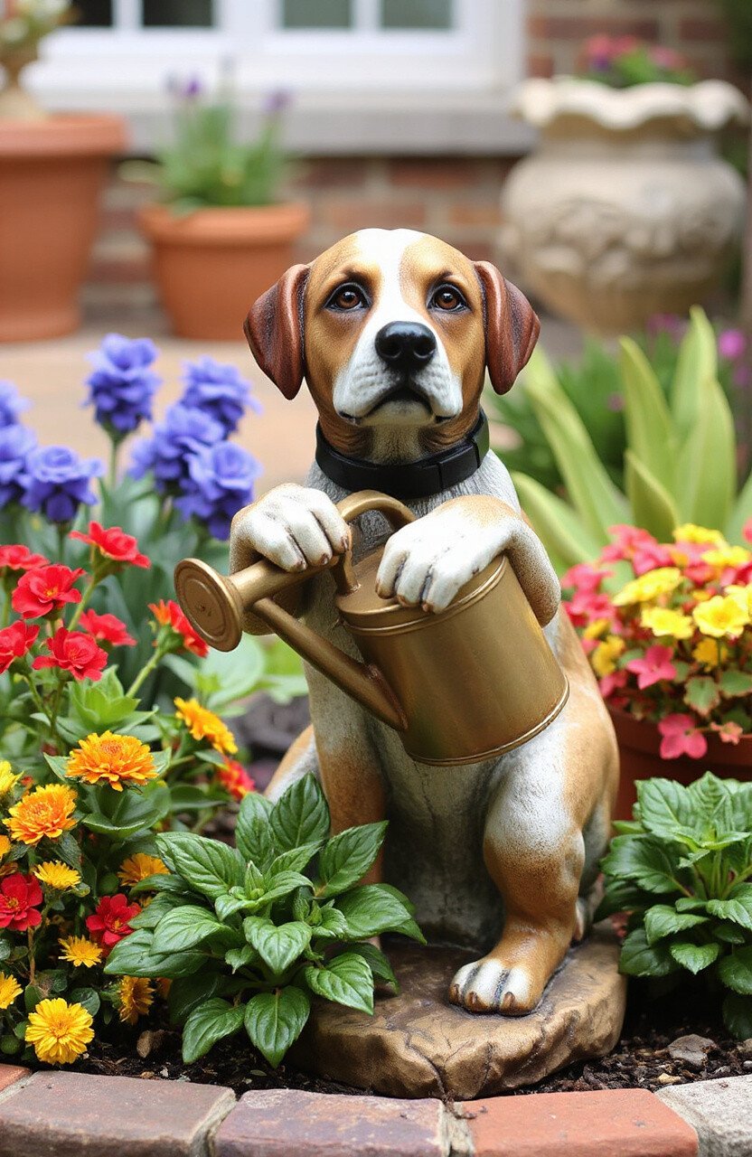 Imagine a dog helping you water the plants! This playful statue features a dog holding a watering can, adding humor and charm.