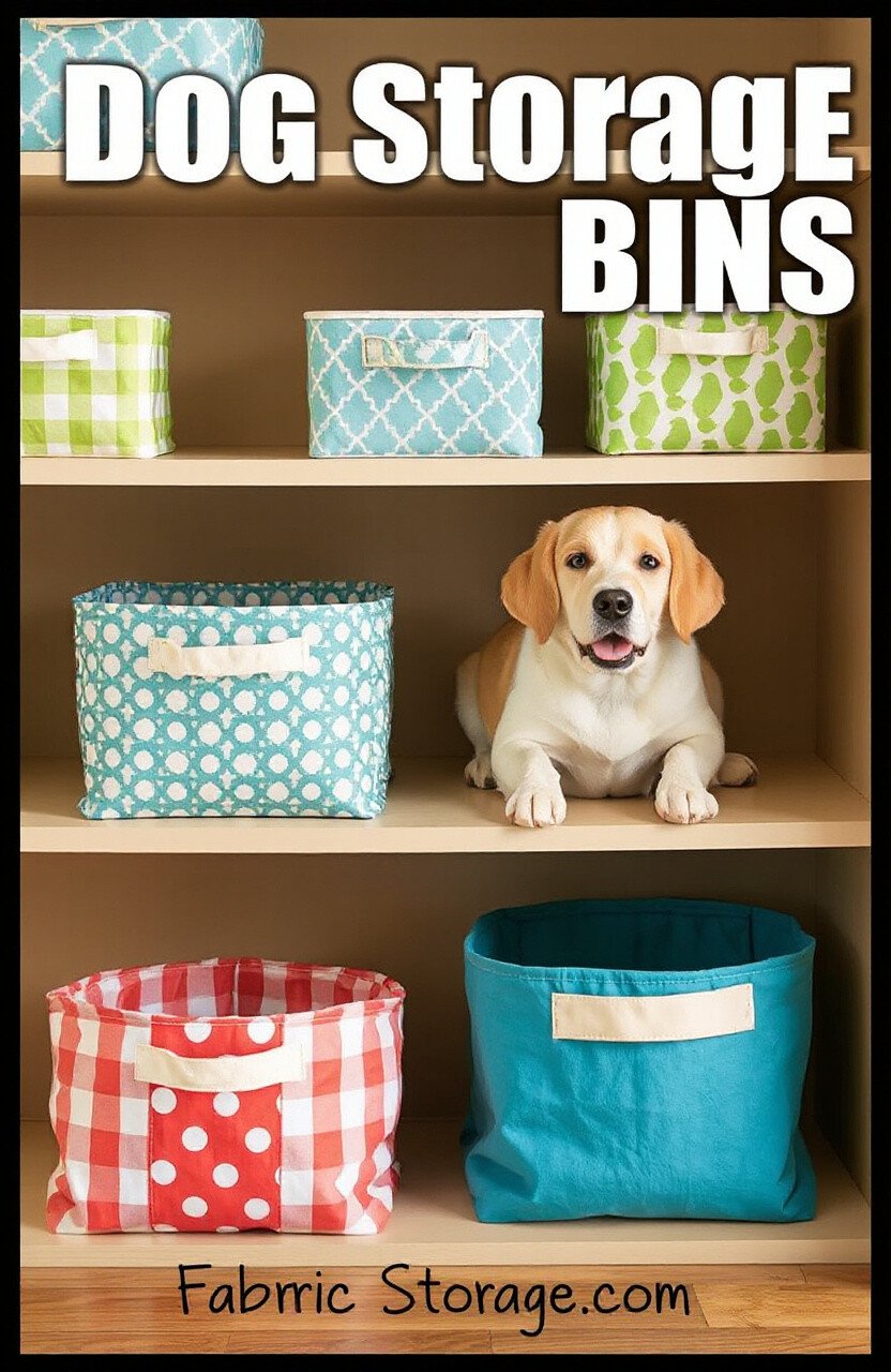 Colorful fabric bins add a playful vibe to any room. They’re great for organizing dog items.