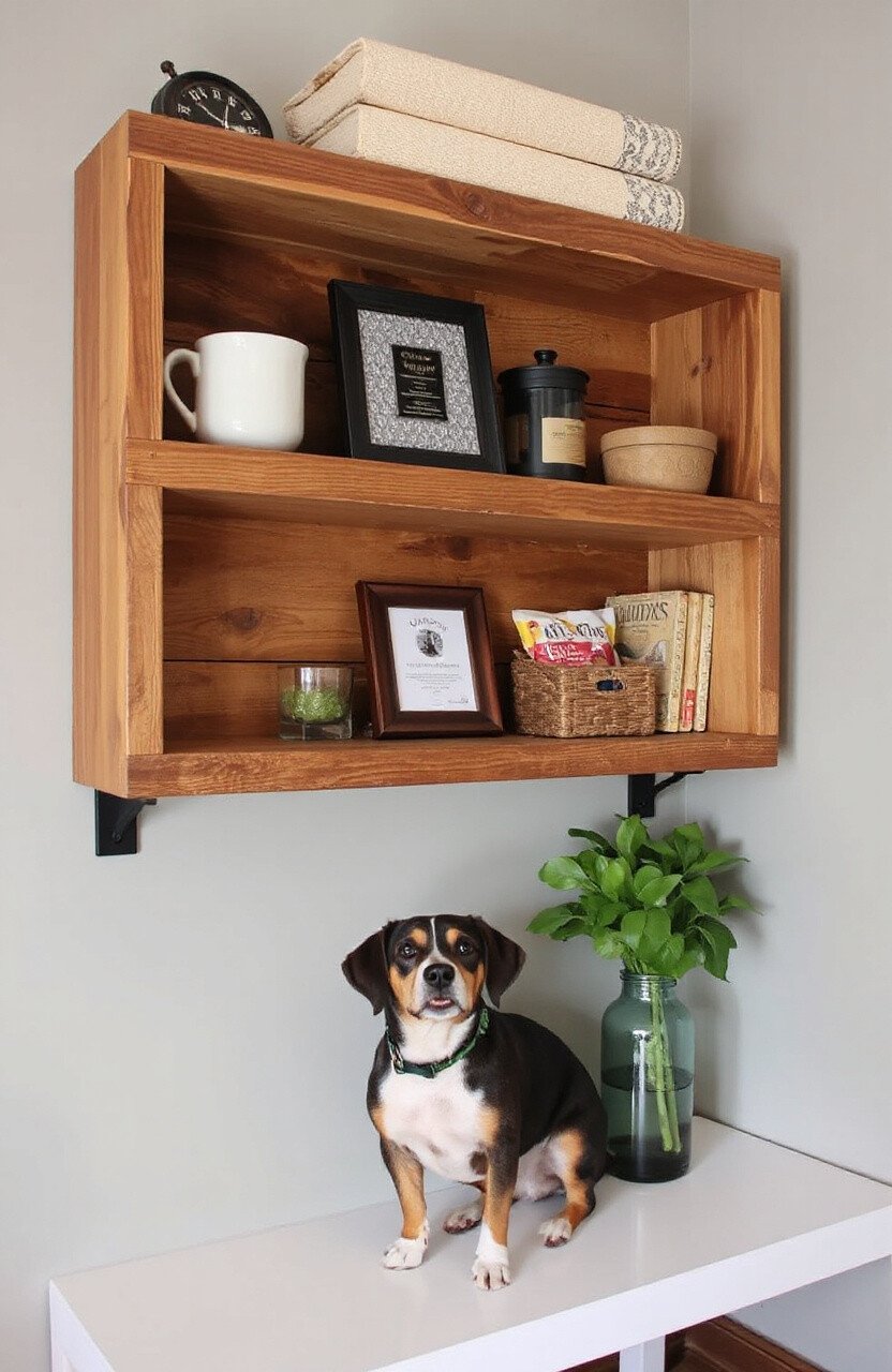 Use these shelves to display dog awards, photos, or small storage boxes for treats.