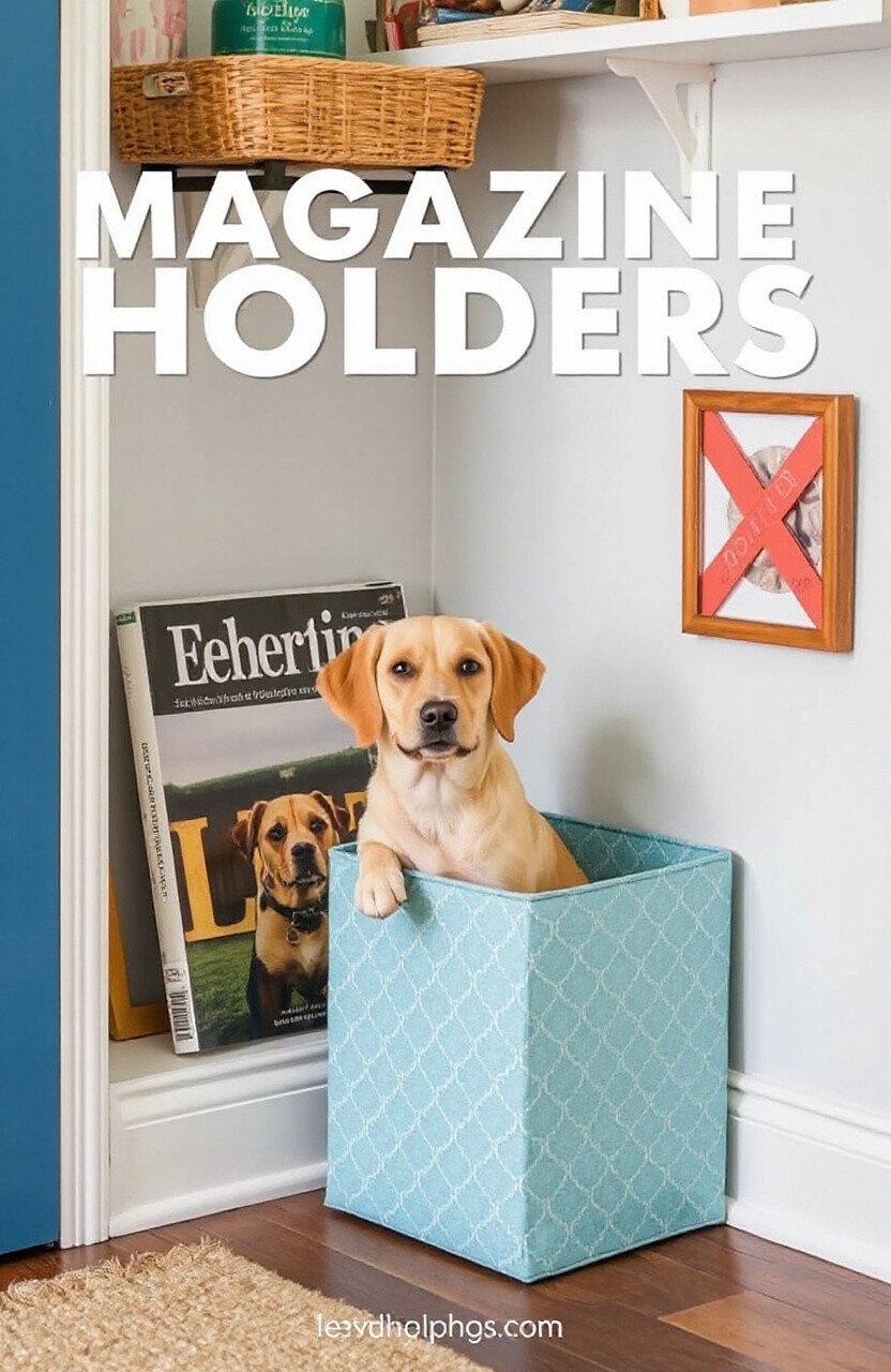Repurpose magazine holders for storing flat items like training pads or grooming mats.