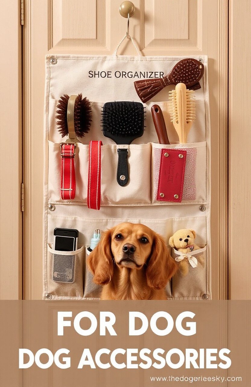 A shoe organizer can be a surprising solution for storing dog accessories. Hang it on the back of a door.