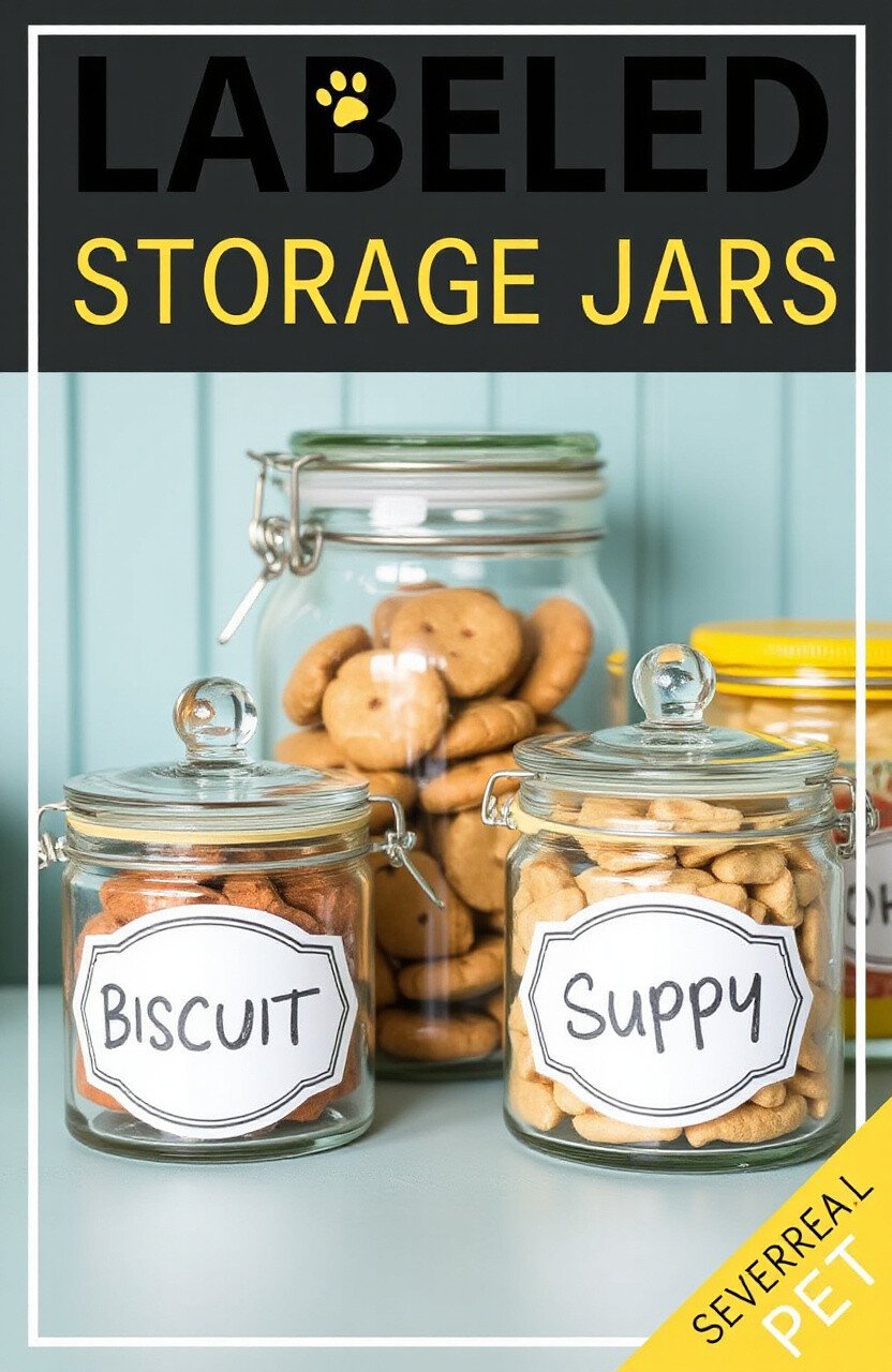 Use labeled jars for storing treats and biscuits. They keep snacks fresh and organized.
