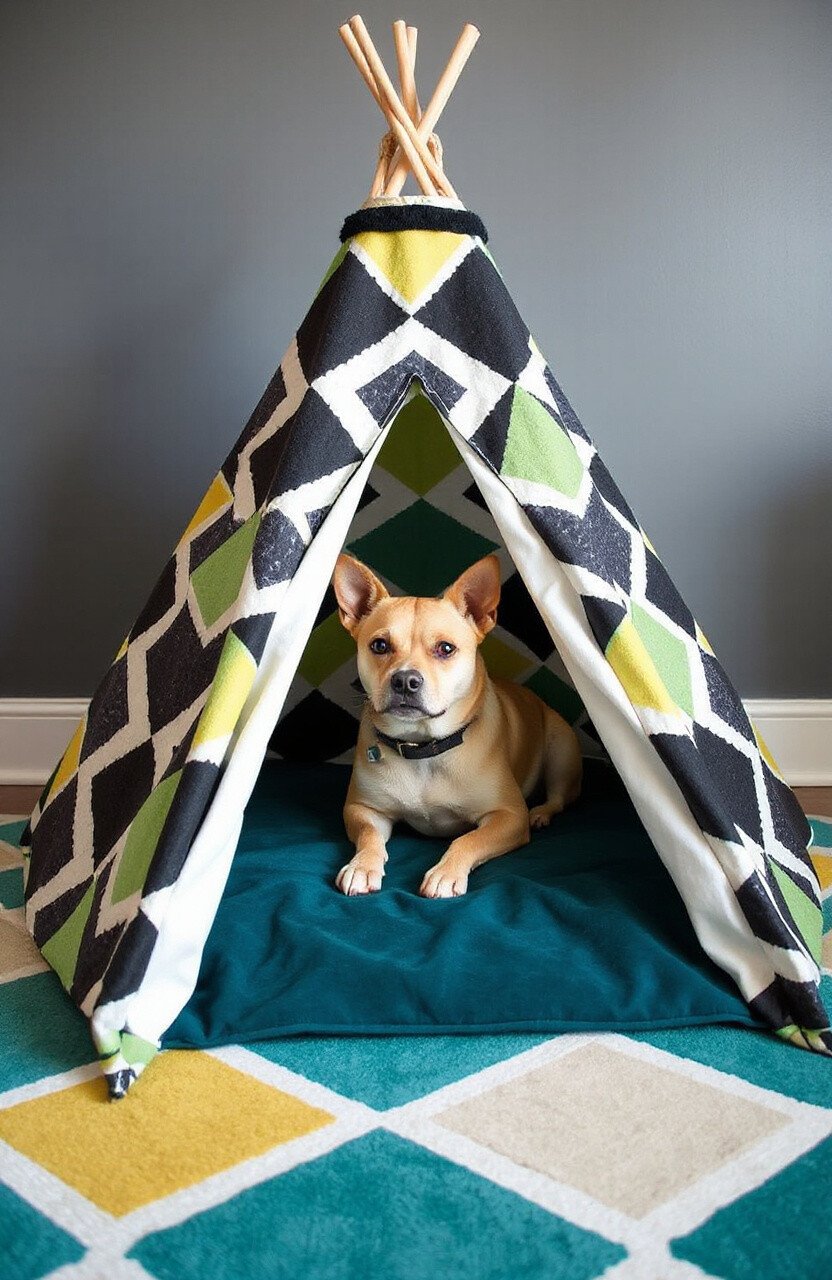 Great for dogs who love to play and explore. Add some potted plants around the teepee to enhance the jungle theme. This trendy design is a hit among urban pet owners looking for a splash of color.