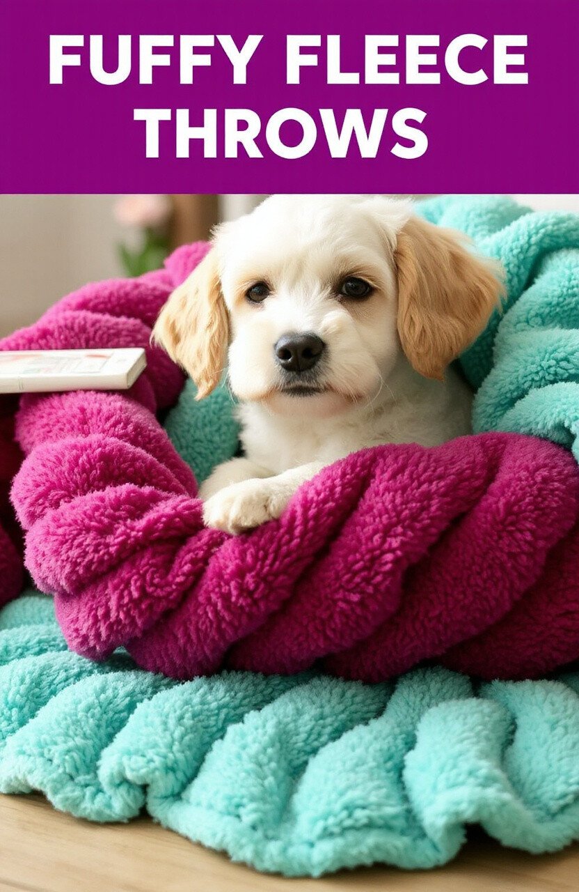 Fluffy fleece throws are like a soft cloud your dog can sink into. They’re lightweight yet super warm, making them perfect for any season. Choose vibrant colors to add a pop of fun in your living room.