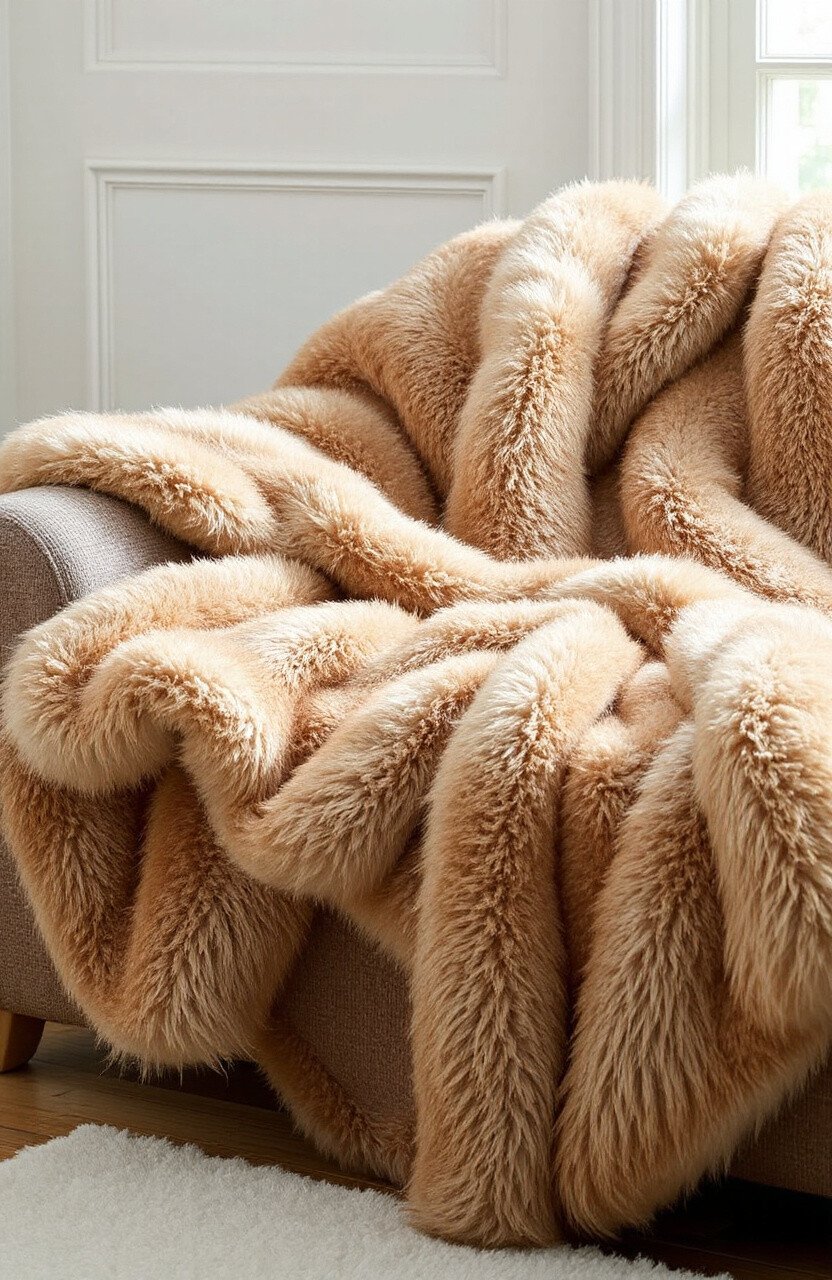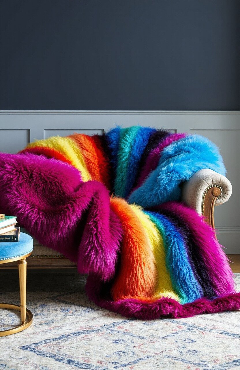 Think of fur throws in dazzling colors like electric blue or deep magenta. These vibrant pieces can instantly add a pop of color and warmth to any room. Drape them over a couch or bed for an immediate style upgrade.