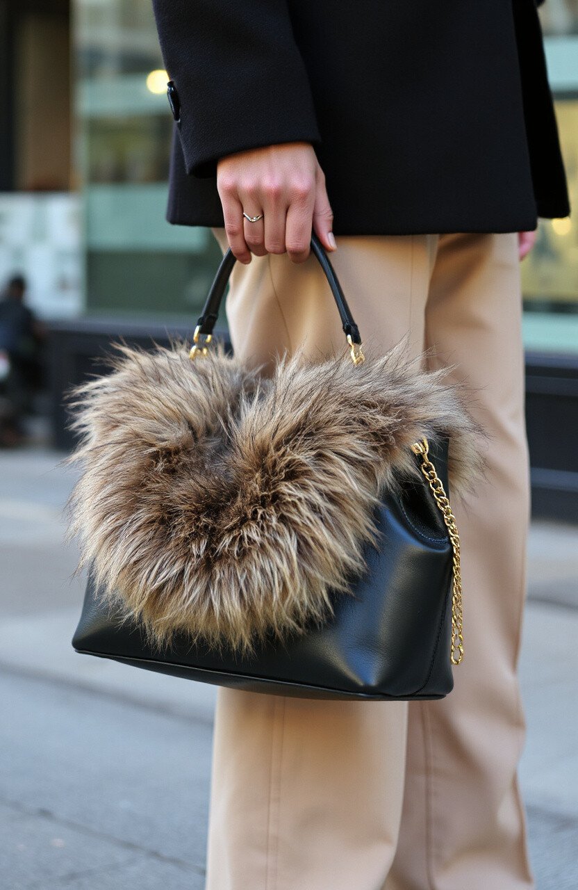 Bags with fur accents are a delightful way to add texture to your outfit. They stand out, making even the simplest ensemble feel luxurious. Imagine the soft touch of fur every time you reach for your bag.