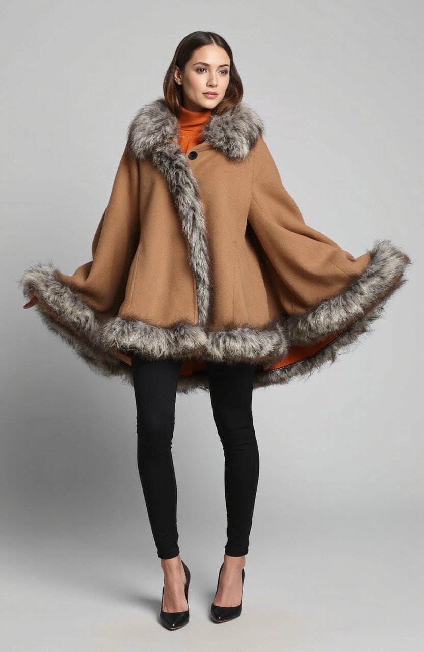 Pair with sleek pants or a simple dress to let the cape shine. Fur-trimmed capes work well for both casual outings and formal events.