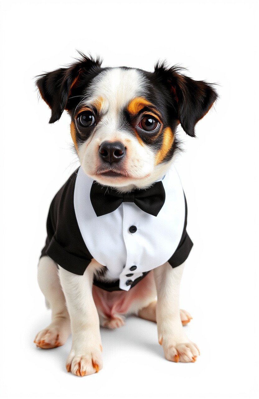 Consider adding a matching bow tie for extra flair. This tuxedo is easy to find and often comes at an affordable price. It’s the go-to choice for pet owners who want their furry friend to look smart and sophisticated.