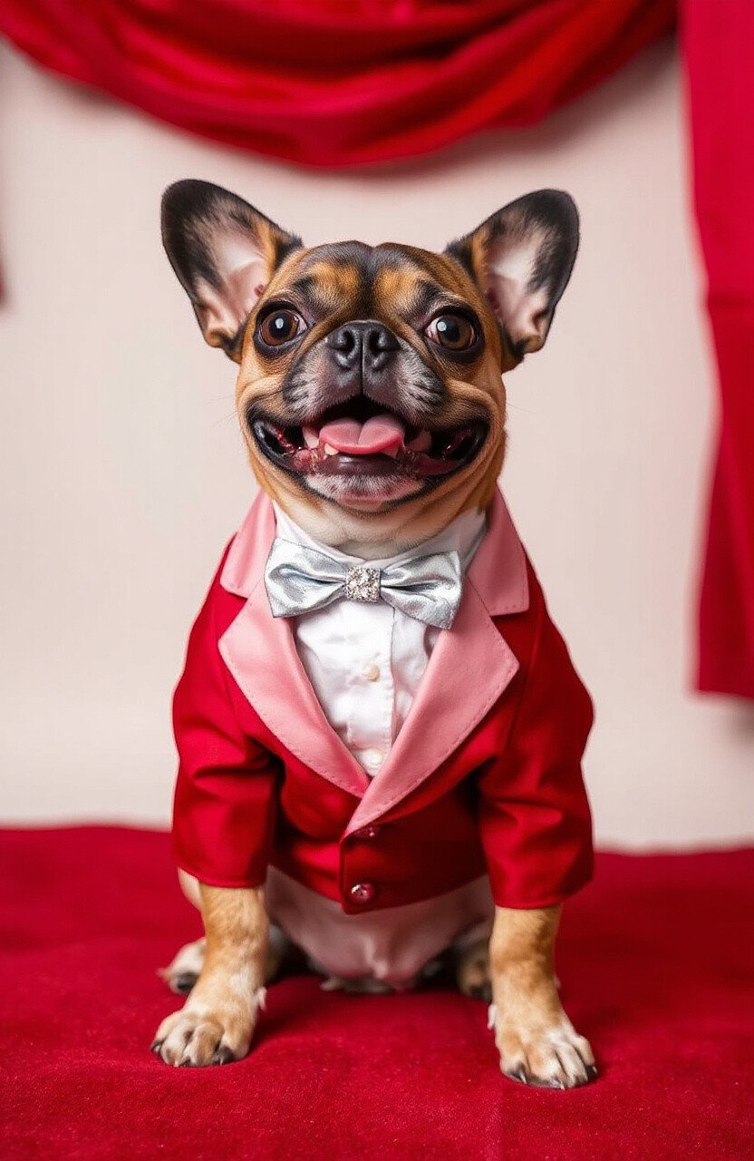 Add some bling with a sparkly collar or bow tie. This tuxedo is perfect for special occasions like awards or gala events. While it may be on the pricier side, the impact is worth every penny.