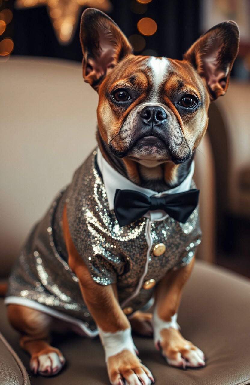 Sequin tuxedos are for pets who love to dazzle. The shimmering sequins reflect light, making your pet the star of any event. It’s perfect for celebrations like New Year’s or birthdays.
