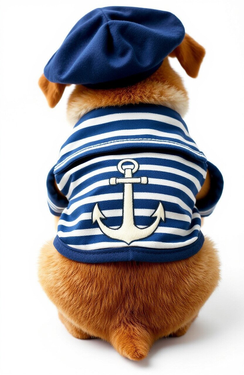 Set sail with this charming sailor vest. Featuring nautical stripes and an anchor design, it’s a classic and funny choice for any sea-loving pup.