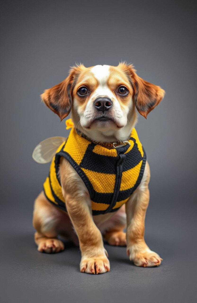 Watch as your dog buzzes around like a cute bumblebee. This vest features vibrant yellow and black stripes with tiny wings. It’s an eye-catching and playful design.