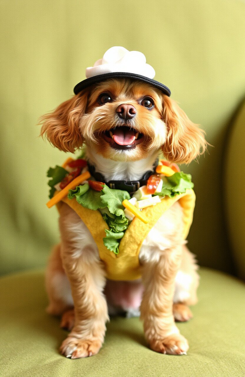 Your dog as a taco is a recipe for laughter! This vest features all the toppings, from lettuce to cheese, making it a deliciously funny choice. It’s great for food-themed events or Halloween.