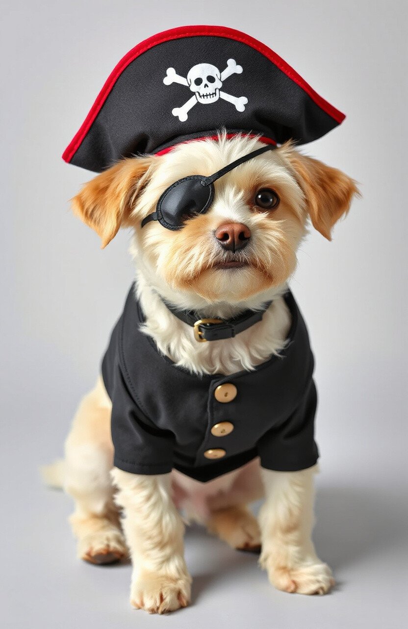 Ahoy, matey! Your dog will be the captain of cuteness in this pirate costume. With a tiny hat and an eye patch, your pup can sail the seas of your neighborhood in style.