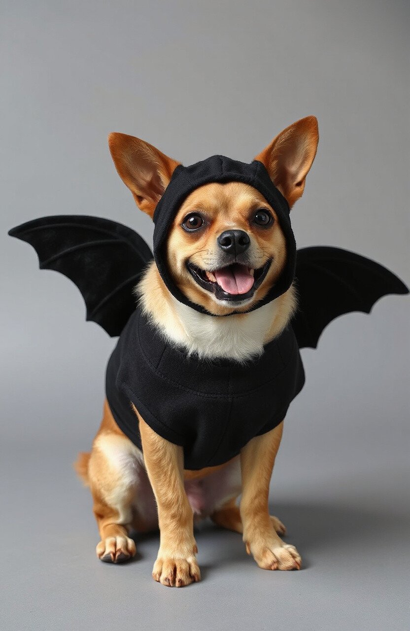 Your dog will be the spookiest pup on the block with a bat costume. Black wings and pointy ears make this outfit perfect for Halloween night.