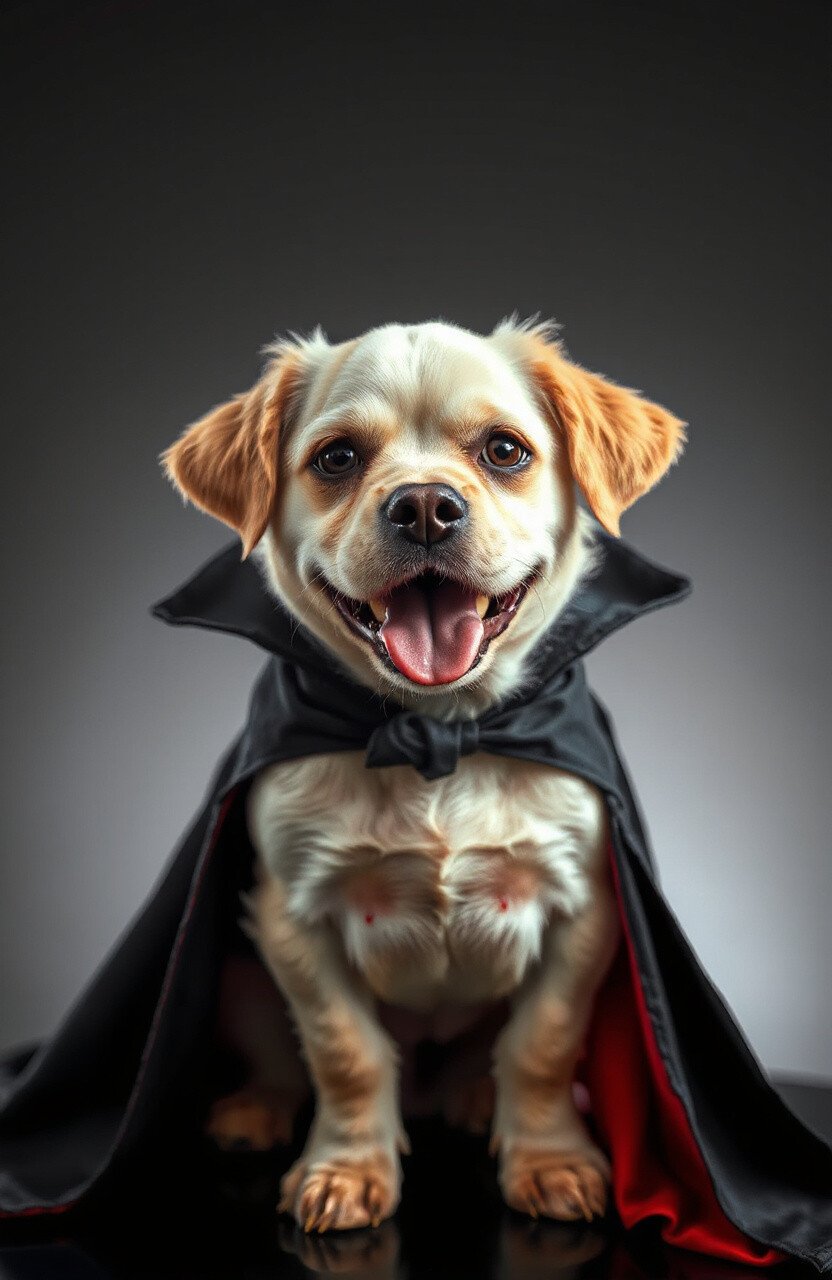 Let your dog channel their inner Dracula with a vampire costume. A cape and fangs will make your pup look delightfully devilish.