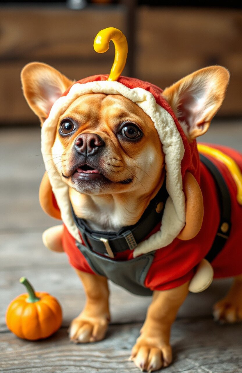 Get ready for some laughs with a hot dog costume. This outfit is hilarious and adorable, with buns on the sides and a squiggle of mustard on top.