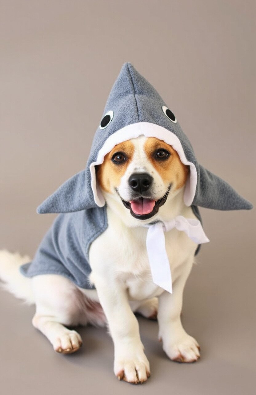 Your dog will be the king of the ocean with a shark costume. With fins and a dorsal fin, this outfit is a splash hit.